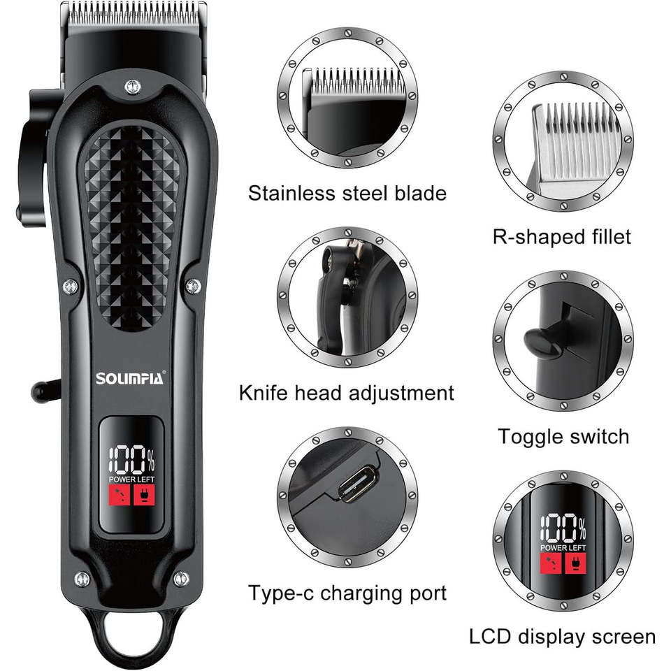 Cortadora de Pelo Eléctrica Solimpia, Máquina Cortadora de Pelo Ajustable, Recortadora de Pelo con Carga USB para el Cuidado Masculino