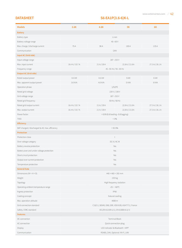 Solis Inverter-Inversor Solís Híbrido Monofásico Residencial, Inversor Solís, Inversor Solís Híbrido, 3,6 (-6), 3,6KW, 4,6KW, 5KW, 6KW