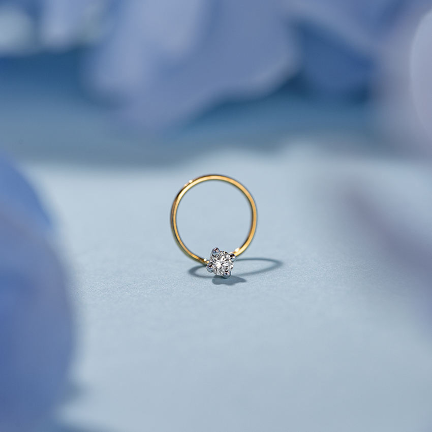 Anillo de Nariz de diamante cultivado en laboratorio solitario personalizado 14K oro amarillo joyería nupcial tradicional precio de fábrica Diamante de corte redondo