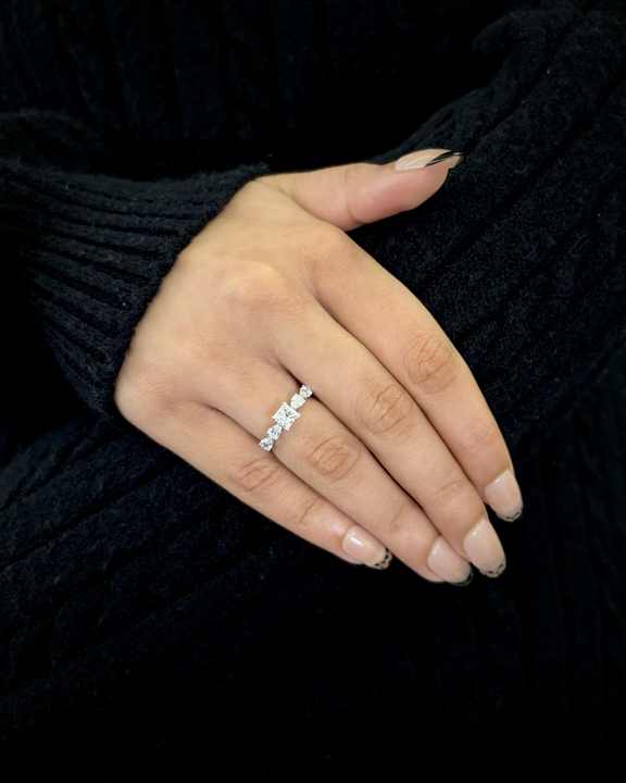 Anillo de Diamantes Cultivados en Laboratorio con Corte Princesa y Pera, Multicorte, Oro de 14K, Venta al por Mayor, Fabricante y Proveedor de Joyería Fina OEM