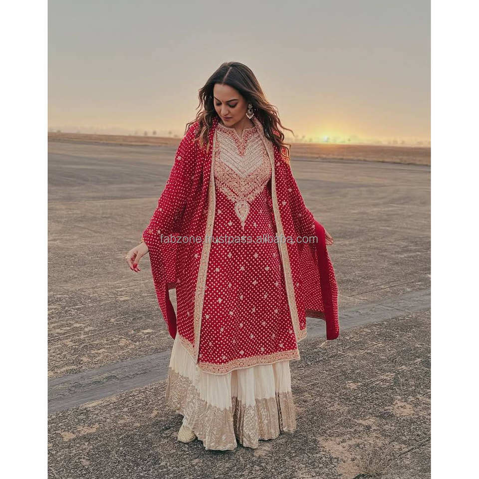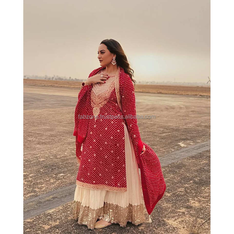 Sonakshi Sinha Conjunto Sharara de mujer de color rojo para bodas inspirado en actrices