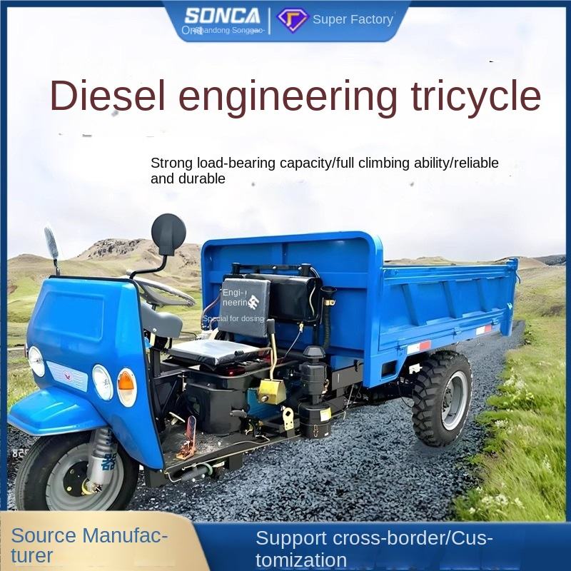 Triciclo de Ingeniería Songjia para Construcción, Movimiento de Tierras, Transporte de Arena, Arrastre de Ladrillos, Autodescarga, Agrícola, 2500 kg de Capacidad