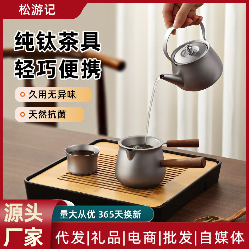 Juego de té Songyouji de titanio puro, filtro portátil gris titanio para uso en oficina y al aire libre