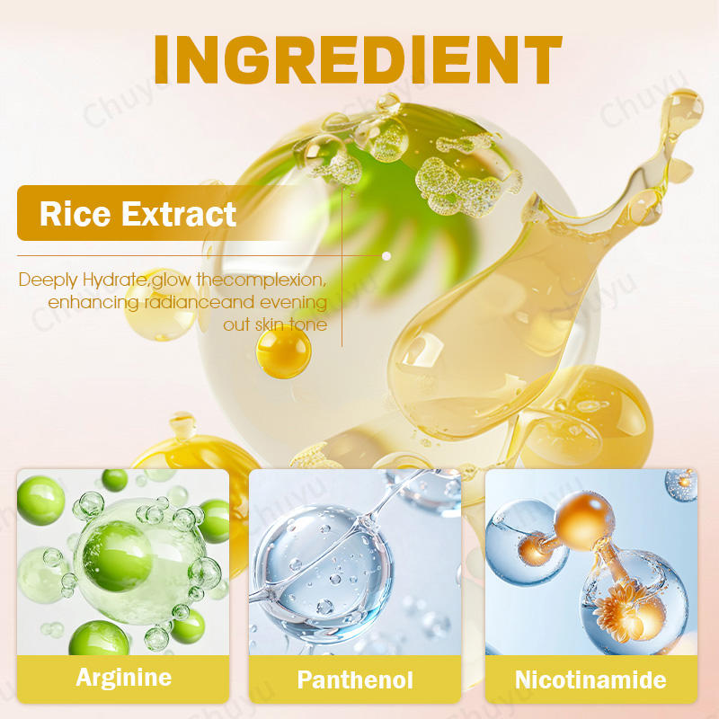 Filtrado de Fermento de Arroz, Extracto de arroz hidrolizado, Glicerina, Niacinamida, Pantenol, Galato de epigalocatequina, Jugo de hoja de Aloe Barbadensis, Extracto de raíz de SoFora Angustifolia, Extracto de corteza de sauce blanco, Hialuronato de sodioIngrediente principal