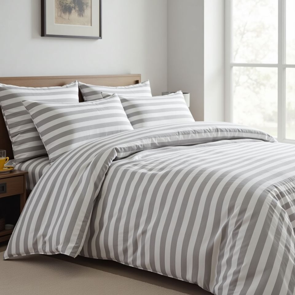 Funda Nórdica de Polialgodón de Estilo Hotelero Sofisticado, 210 cm x 230 cm, con Rayas Satinadas, Borde Francés, Lavable, 4040s, 250T, 120 g/m²