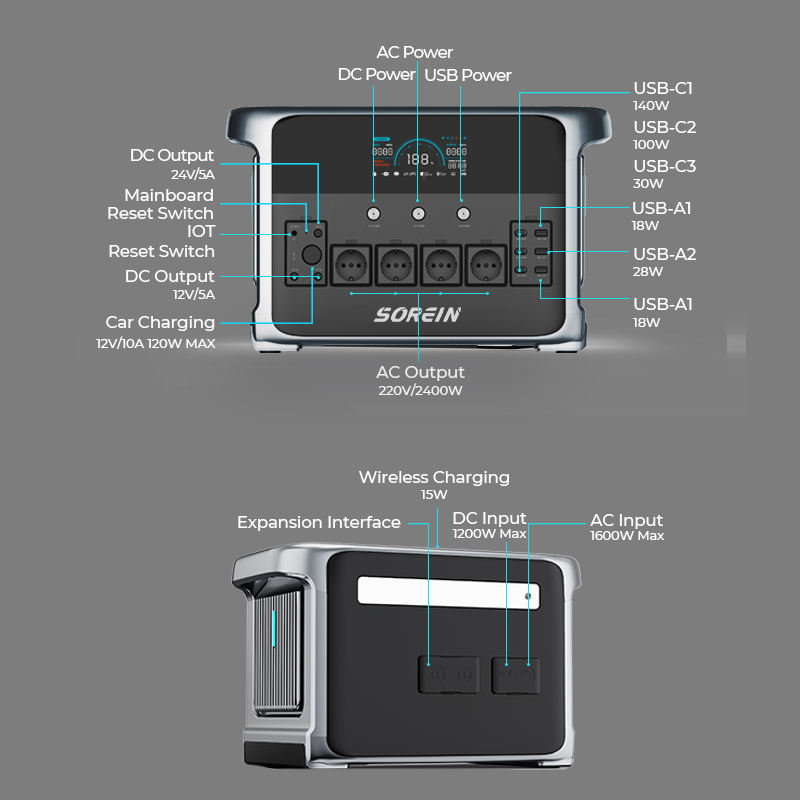 Sorein 2400W generador eléctrico solar LiFePO4 Paquete de batería estación de energía eléctrica estación de energía portátil 2000W 2kwh