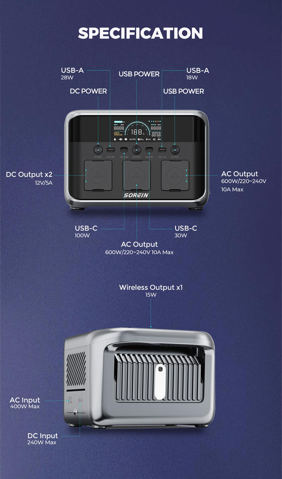 Generador de Energía Portátil Sorein de 600w, Estación de Energía Solar para Exteriores, Banco de Energía Ecoflow River 2 Max, Estación Solar