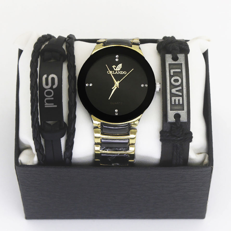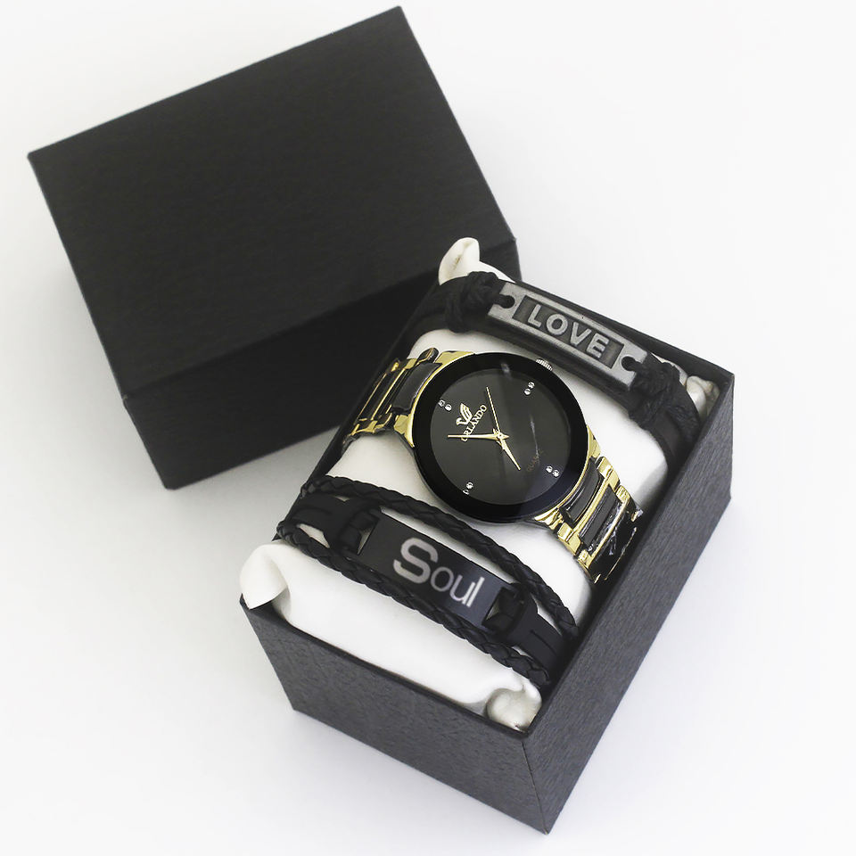 Soul Reloj de estilo simple para hombres Esfera de 38mm de diámetro Encanto de moda Hombres Reloj de cuarzo y pulsera Set Regalo