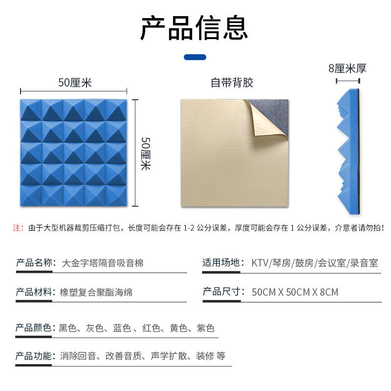 Panel Absorbente de Sonido de 50cm X 50cm X 8cm Autoadhesivo en Forma de Pirámide para Reducción de Ruido en KTV, Estudio y Sala de Conferencias
