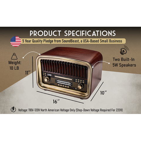 Radio AM/FM Todo en Uno SoundBeast, Reproductor de CD, Entrada Bluetooth, Reproducción y Grabación USB, Reproducción de Tarjeta SD, Entrada Auxiliar