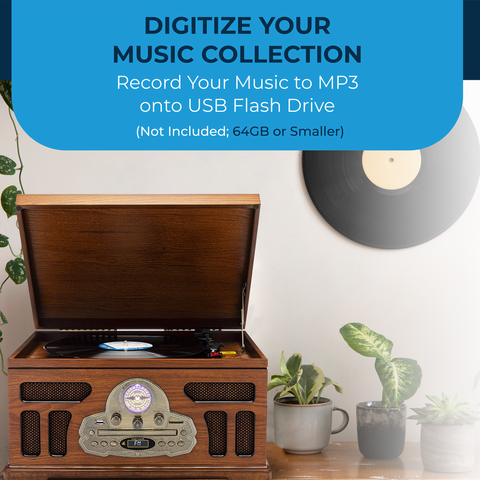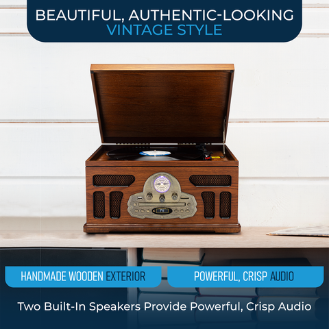 Tocadiscos Todo en Uno SoundBeast, Reproductor de Discos de 3 Velocidades, Bluetooth, CD, Casete, Radio AM/FM, USB, Altavoces Integrados