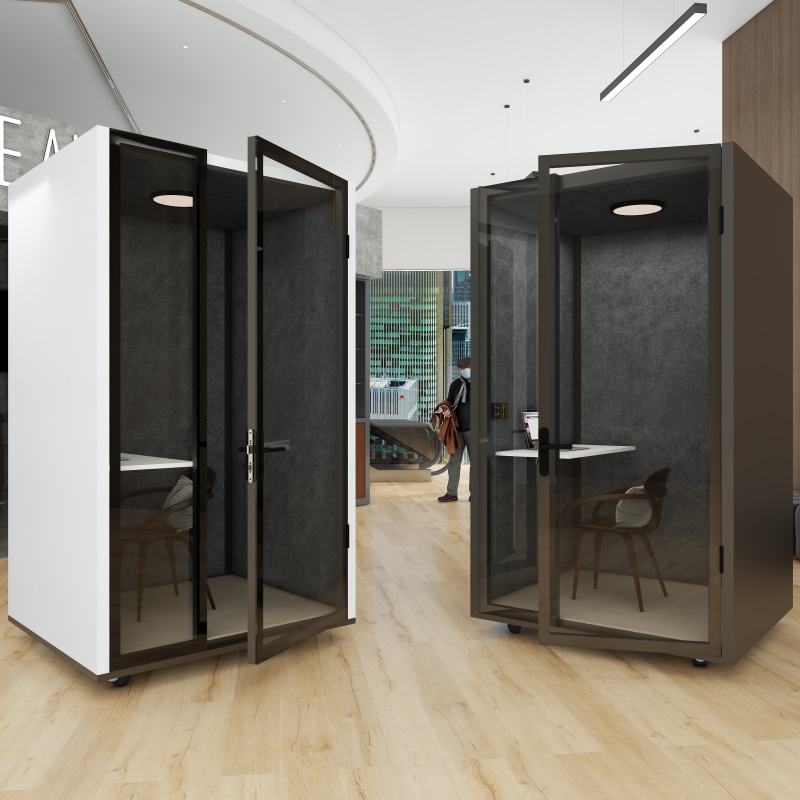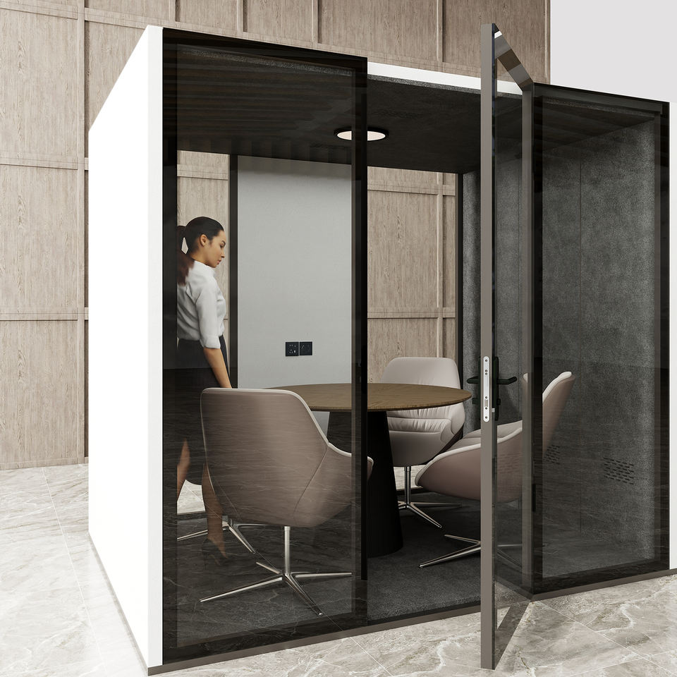 Cabina Acústica Inteligente Compartida para Oficina, Insonorizada y Móvil, con Asientos, Espacio de Trabajo Silencioso