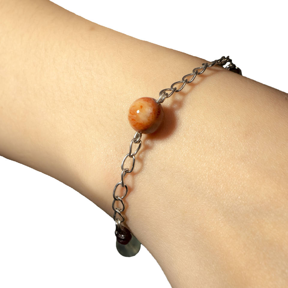 Granate, Coral Rojo Fosilizado, PrehnitaPiedra principal