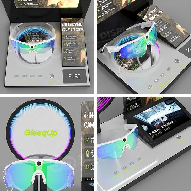 Expositor de Sobremesa Acrílico Interactivo Personalizado de Fábrica para Gafas Deportivas con Reproductor de Audio y Video LCD para Impulsar la Conversión