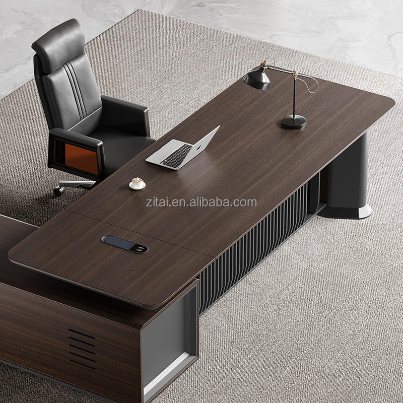 Escritorio Ejecutivo Moderno y Minimalista Personalizado de Fábrica con Combinación de Nogal y Negro para Gerente, Director, Supervisor
