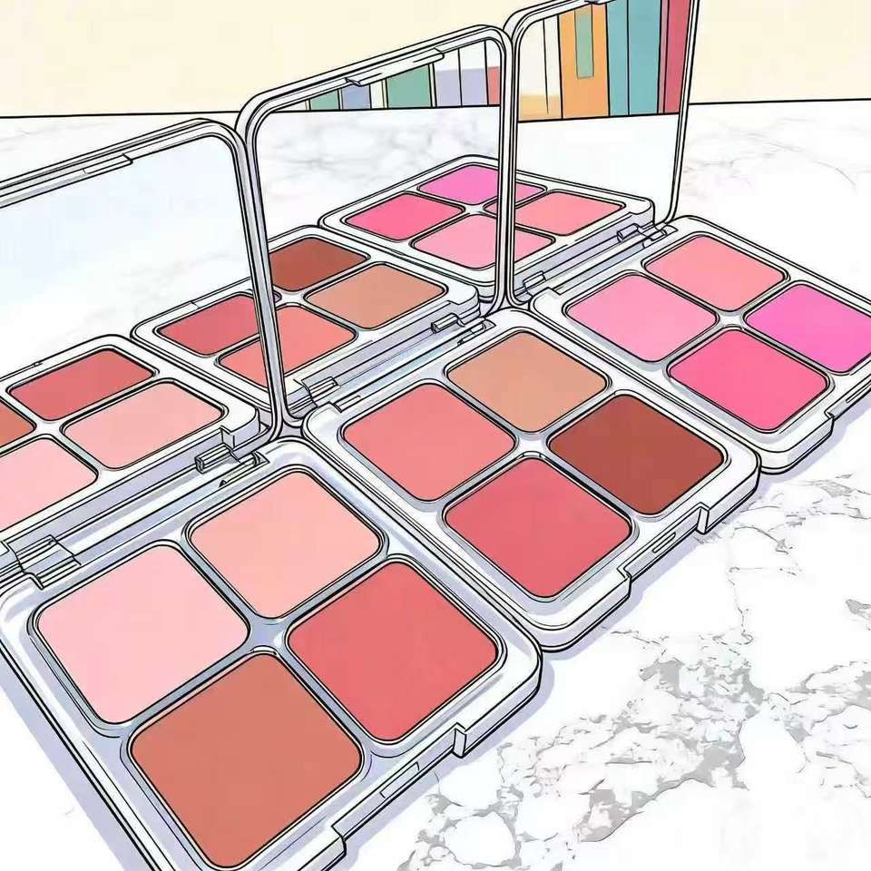 Fábrica de Origen Produce al por Mayor Rubor en Polvo de 4 Colores Personalizado de Alta Gama, Disco de Maquillaje Iluminador de Alta Pigmentación, Mate 7.5G