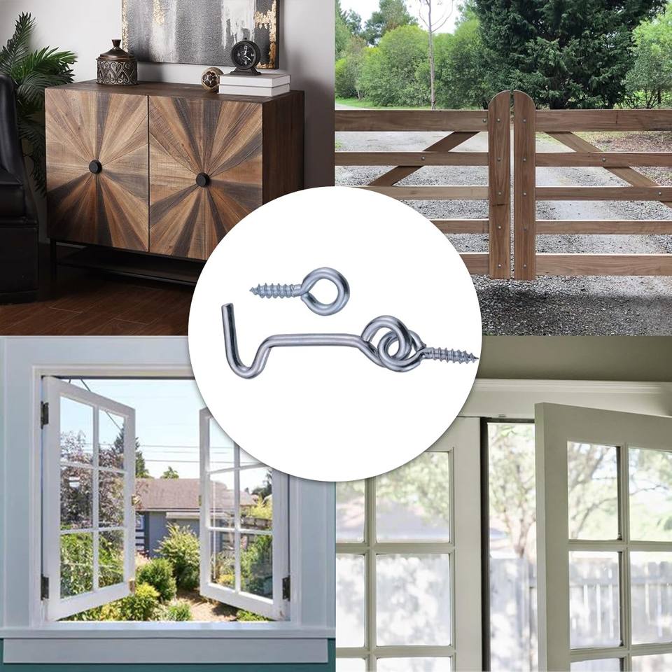 Kit de Cerradura de Puerta Hanlix de Fábrica, de Acero, Latón, Zincado Negro, de 2, 3 y 4 Pulgadas, con Gancho y Pestillo, para Ventanas y Cerraduras de Cabina