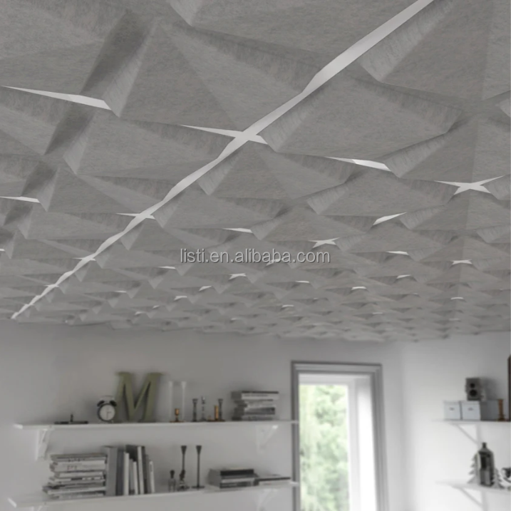 Azulejos de techo de fieltro geométrico tridimensional de Source Factory, tablero de paneles de pared estéreo para insonorizado, resistente a los arañazos