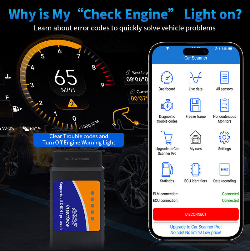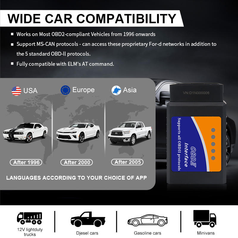 SDK, Lector de códigos, eobd, OBD2, escáner de diagnóstico de automóviles, luz de verificación del motor