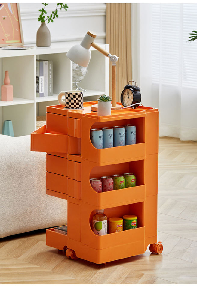 Precio DE LA FUENTE Nuevo Diseño 3 capas ABS Carro rodante Estante multifuncional con ruedas Color naranja