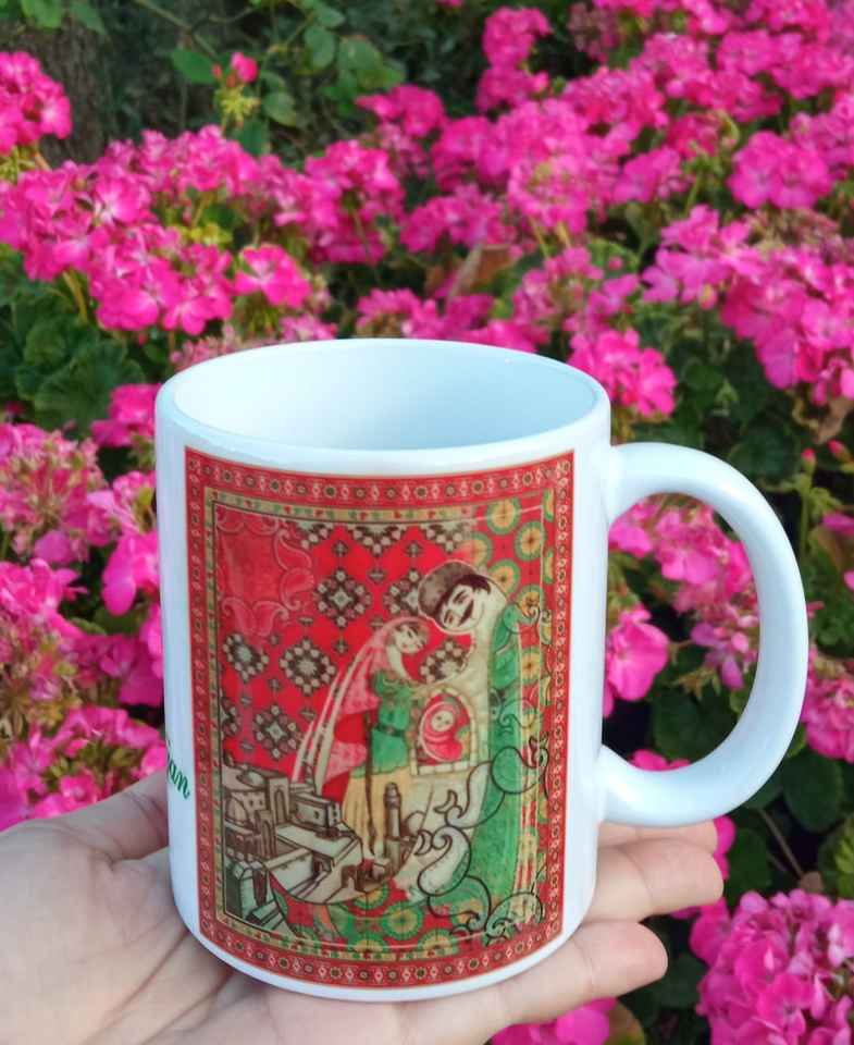 Recuerdo. Composición de estilo nacional azerbaiyano (obra del autor). Técnica de ejecución: imprime el poder del vaso de ginebra.