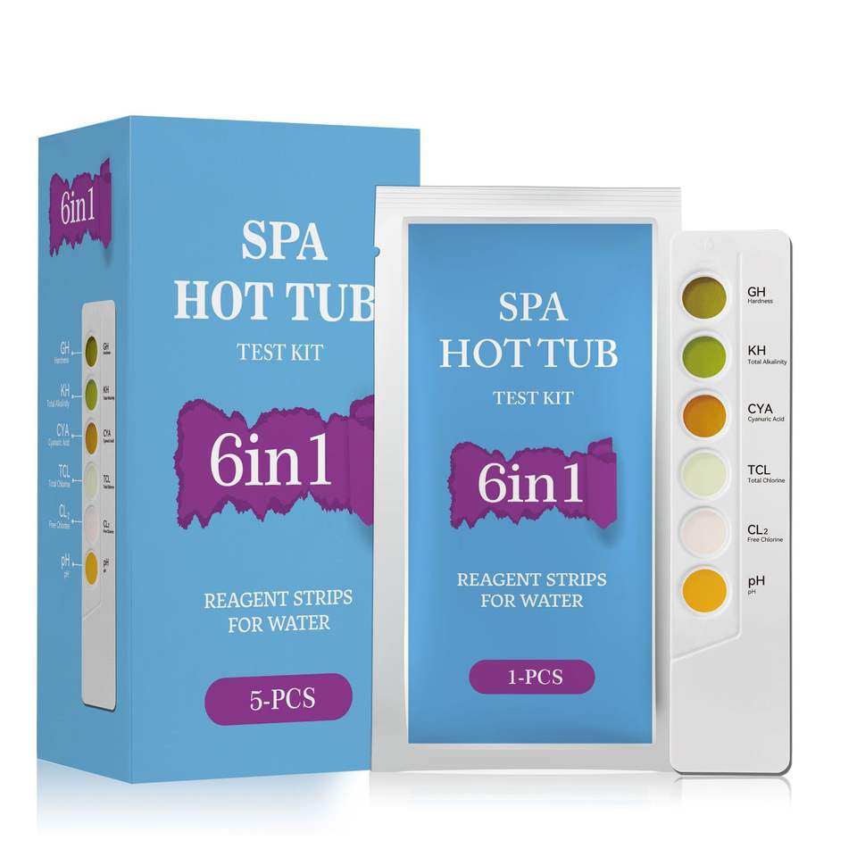Kit de prueba para jacuzzi y spa, tiras reactivas 6 en 1 para agua, 5 unidades, prueba de agua para piscinas