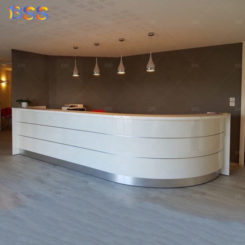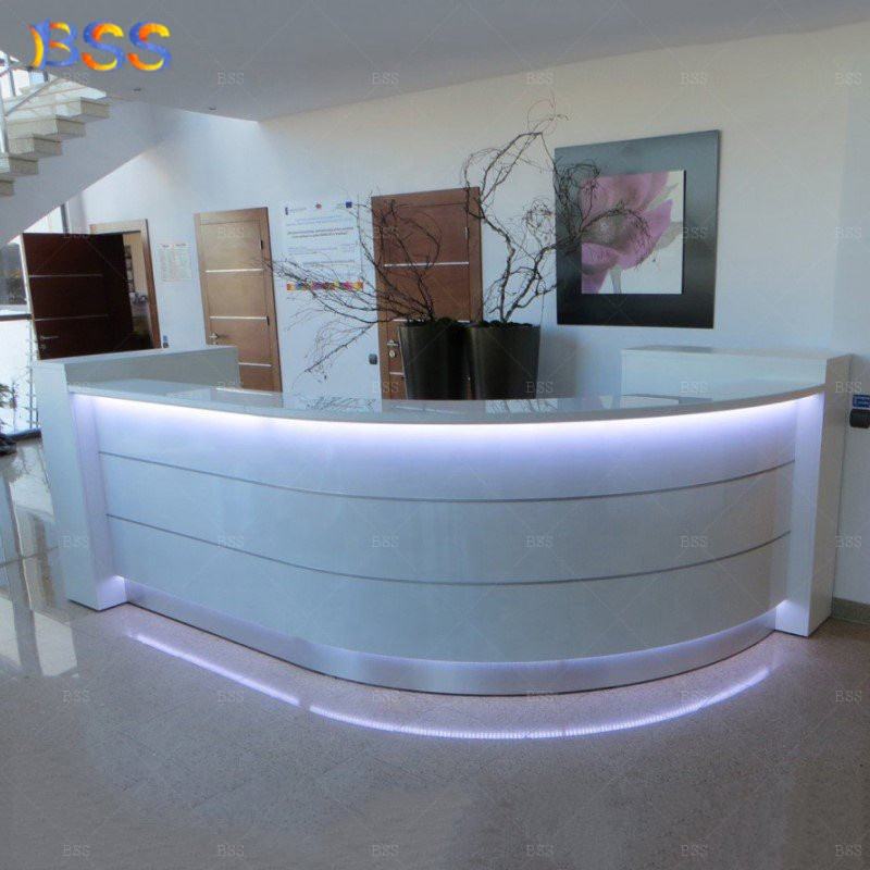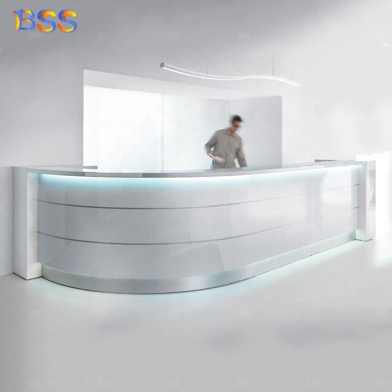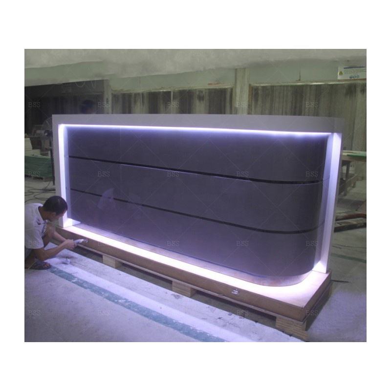 Mostrador de Recepción para Spa, Diseño Ultra Moderno, Alta Calidad, Forma Curva, Luz LED, Mármol Artificial Gris, Personalizado