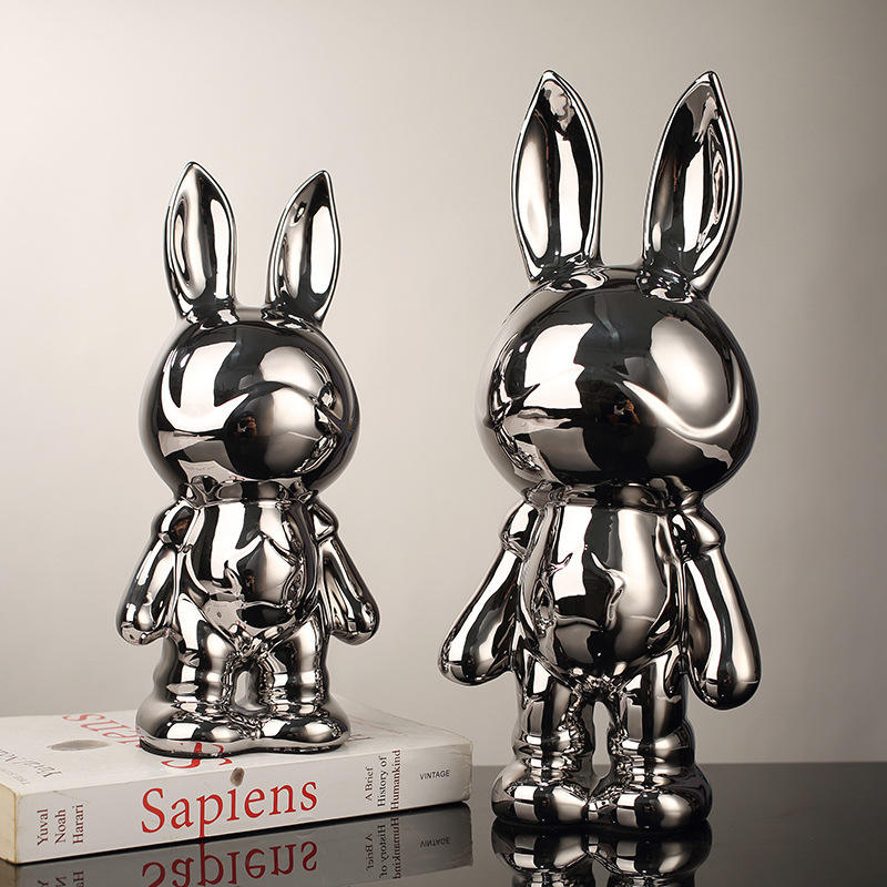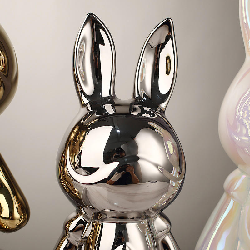 Figura de conejo espacial, caja de dinero artesanal galvanizada para sala de estar, hucha decorativa de porcelana blanca, estilo ligero de lujo