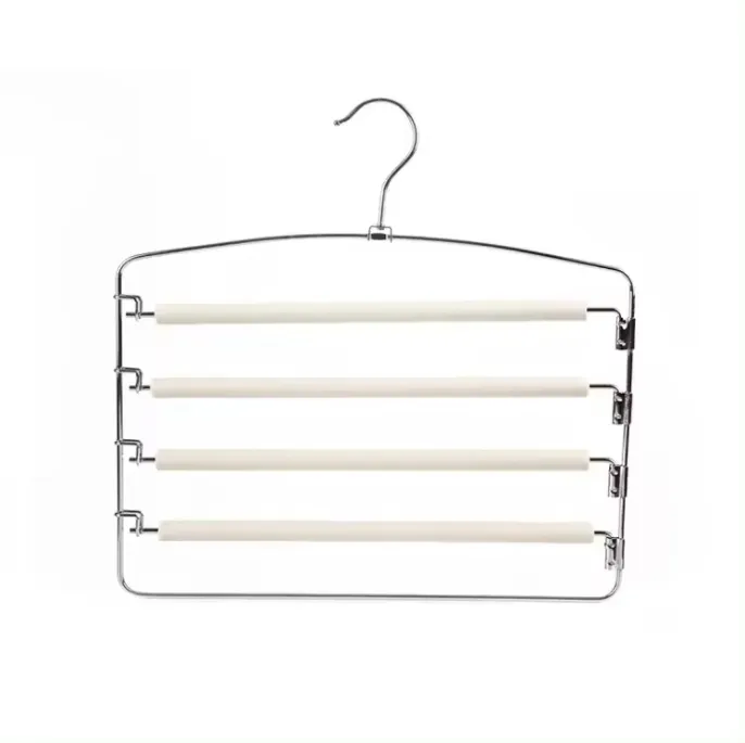Pantalones de hombre de 5 capas cromados antideslizantes que ahorran espacio, perchas holgadas con acolchado de espuma