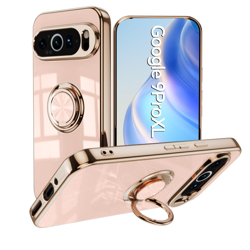 Funda trasera cromada 6D con soporte de anillo para Google Pixel 9 Pro XL