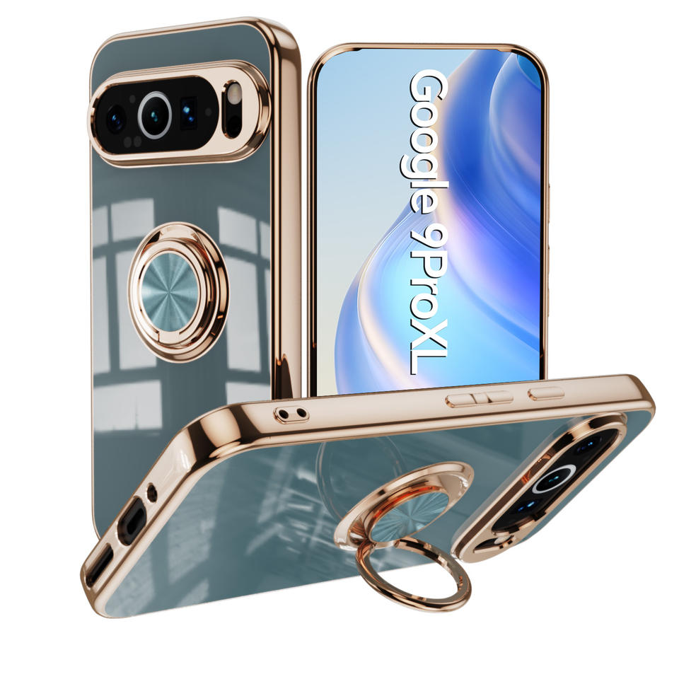 Nombre del producto:Funda trasera cromada 6D con soporte de anillo para Google Pixel 9 Pro XL