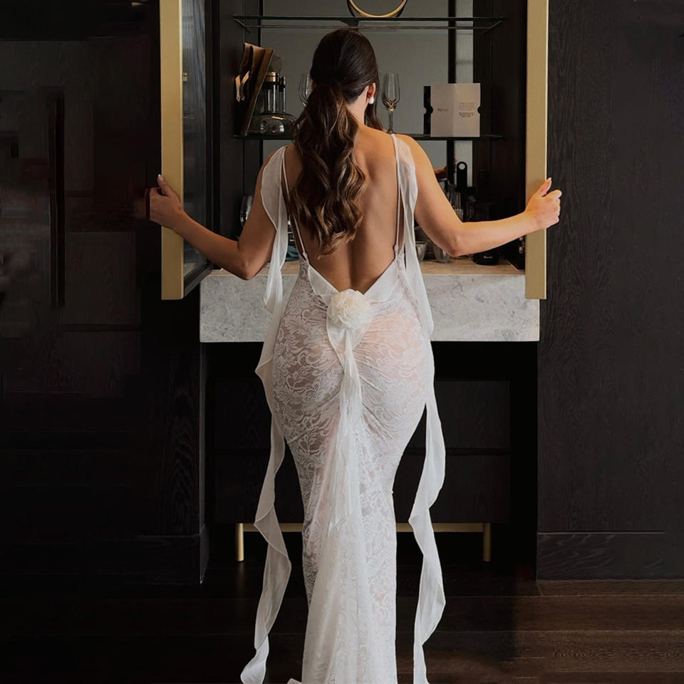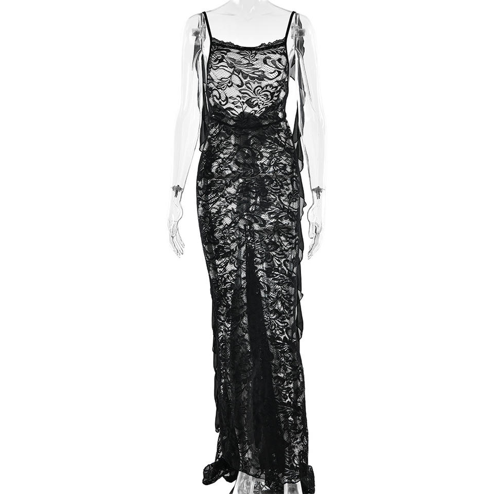 Vestido Maxi de Tirantes Finos sin Espalda, Ajustado y Transparente, Vestido de Noche con Cintura Natural, Color Sólido, Moderno y con Lazo Fluido