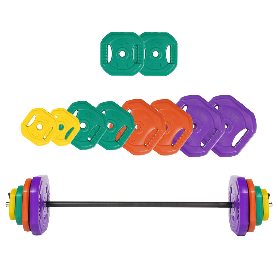 En Stock en España: Set de Barras de Pesas de 40 kg de Hormigón Colorido con Cubierta Protectora de PVC para un Entrenamiento Seguro y Duradero
