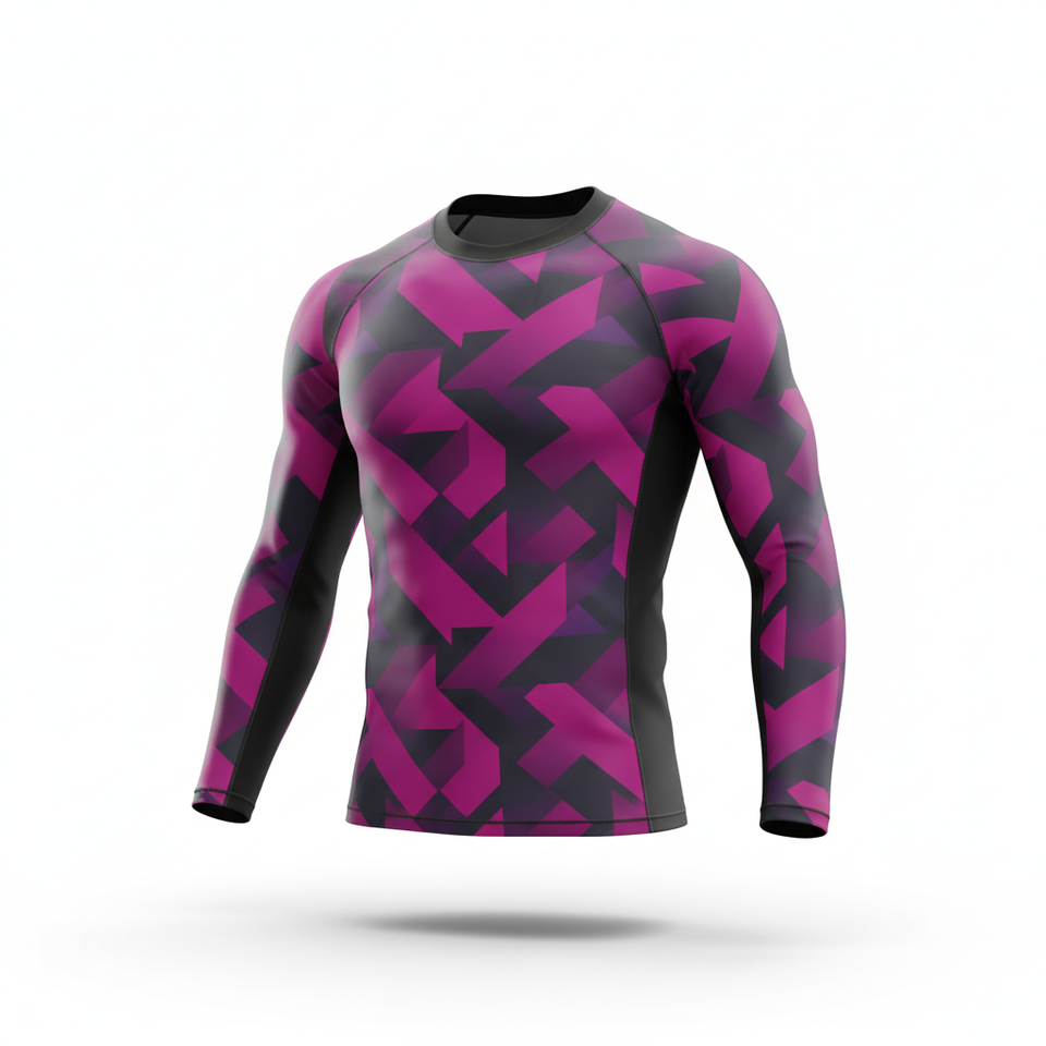 Camiseta de Compresión Rash Guard de Poliéster y Elastano para Hombre, Manga Larga, Secado Rápido, Ropa Deportiva Personalizable