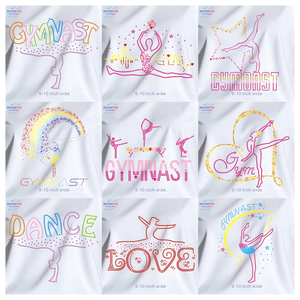 Transferencia de diamantes de imitación personalizada para gimnasta, plancha para gimnasta con diamantes de imitación