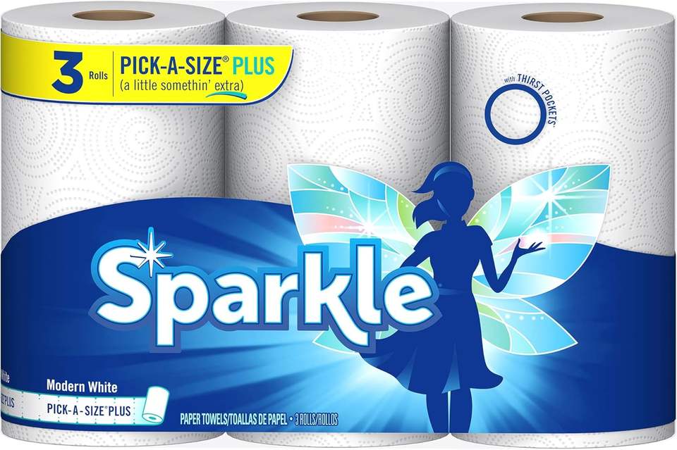 Toallas de Papel Desechables Suaves Sparkle Pick-A-Size Plus de 3 Capas, 3 Rollos = 6 Rollos Regulares (6 Paquetes de 3 Rollos Cada Uno) Valor Diario