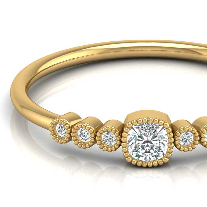Sparkle White Lab Grown Diamante amarillo brillante 14K Oro Pureza Miligrain Bordes Joyería fina Anillo de bodas para mujeres niñas