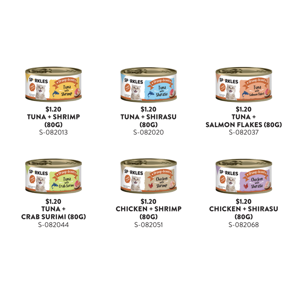 Comida Húmeda para Gatos Sparkles - Gravylicious - Con Taurina (Lata de 80g) Atún + Shirasu