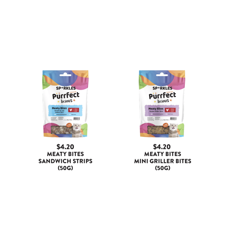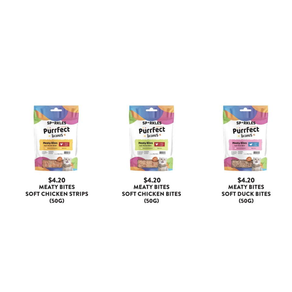 Bocaditos de Carne Brillantes de 50g para Gatos, Mini Bocaditos Grill