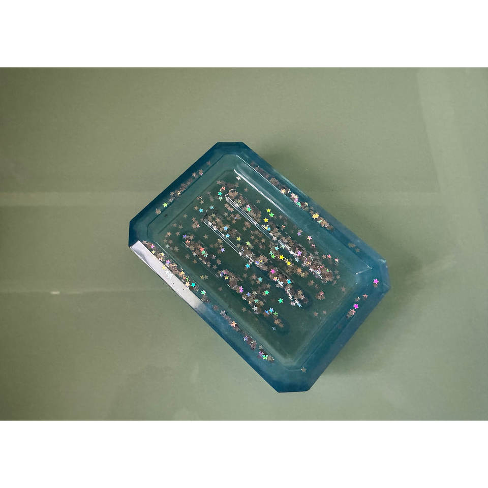 Jabonera azul brillante Soporte y protector de bandeja de jabón de metal y plástico con acabado personalizado para uso en baño o Hotel