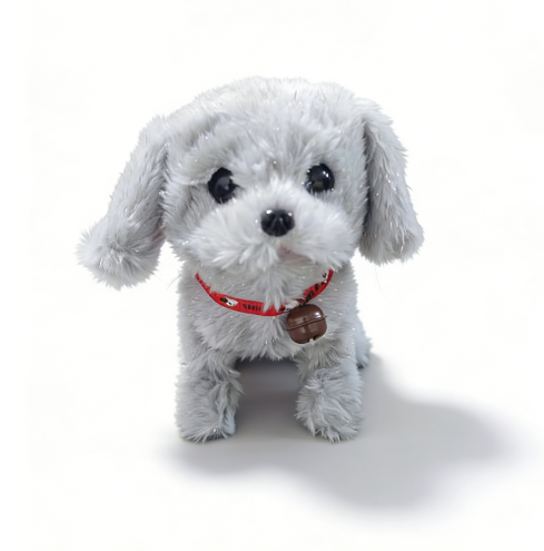 Perro de Peluche Grande Brillante con Collar de Campana - Juguete Interactivo para Caminar y Ladrar, Pelaje Brillante, Relleno de Algodón, Amigo Alegre Deslumbrante