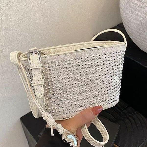 Sparkling Diamond Decor Bucket Bag Bolso de mano y bandolera de cuero PU para mujer