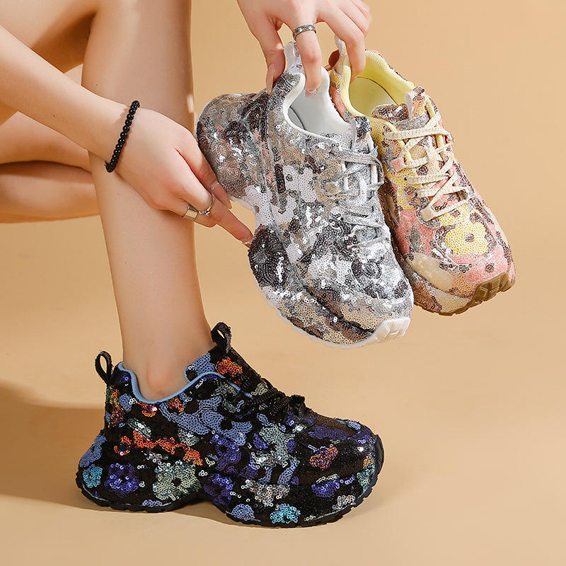 Zapatillas Deportivas con Pedrería Brillante para Mujer, Calzado Reflectante para Salir de Noche, Zapatos de Fiesta, Talla Personalizada, Suela Gruesa