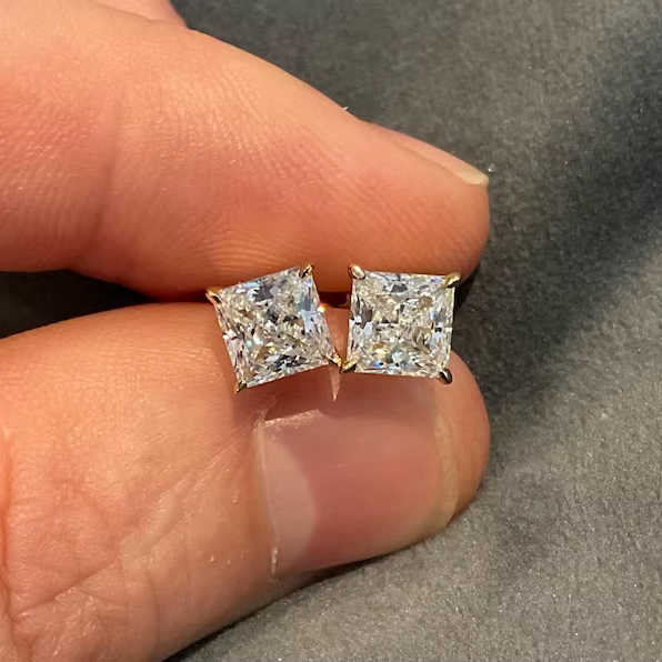 Pendiente Solitario de Diamante Corte Princesa