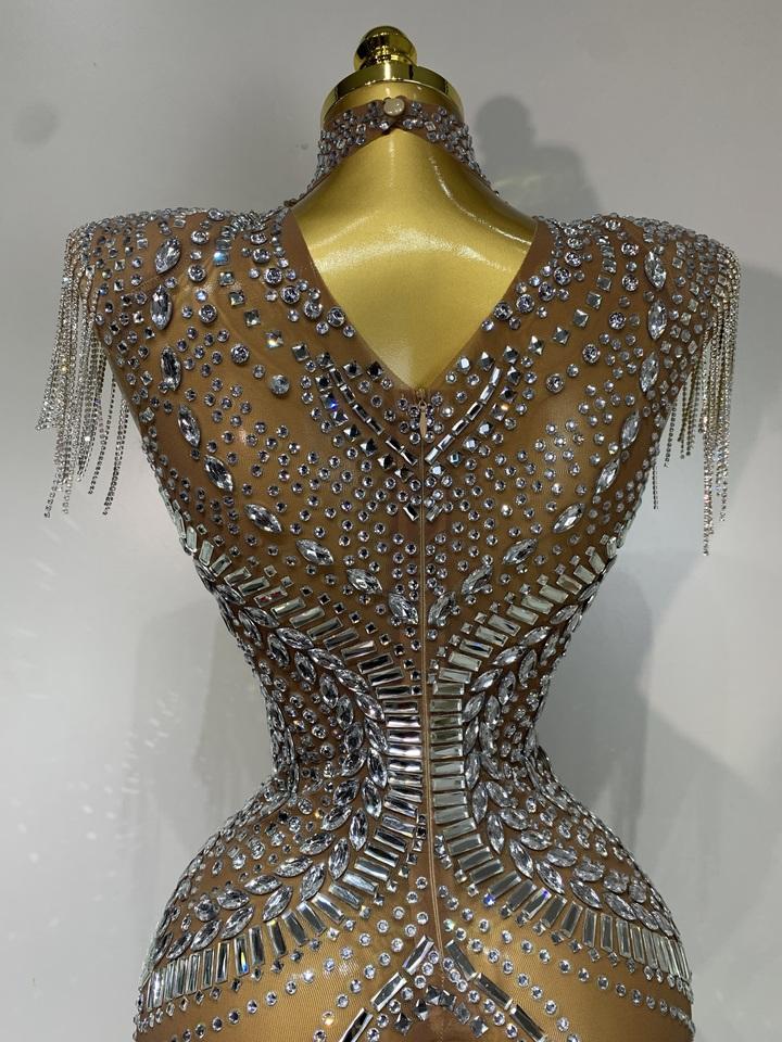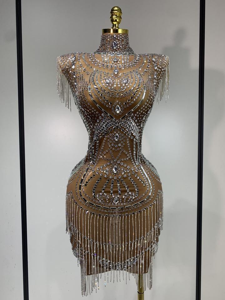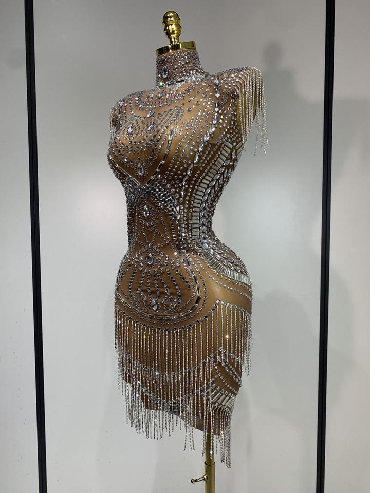 Vestido de Noche de Poliéster con Pedrería Brillante, Traje de Cantante para Escenario, Vestido de Gala de Lujo para Fiesta de Cumpleaños, Bailarina de Club Nocturno