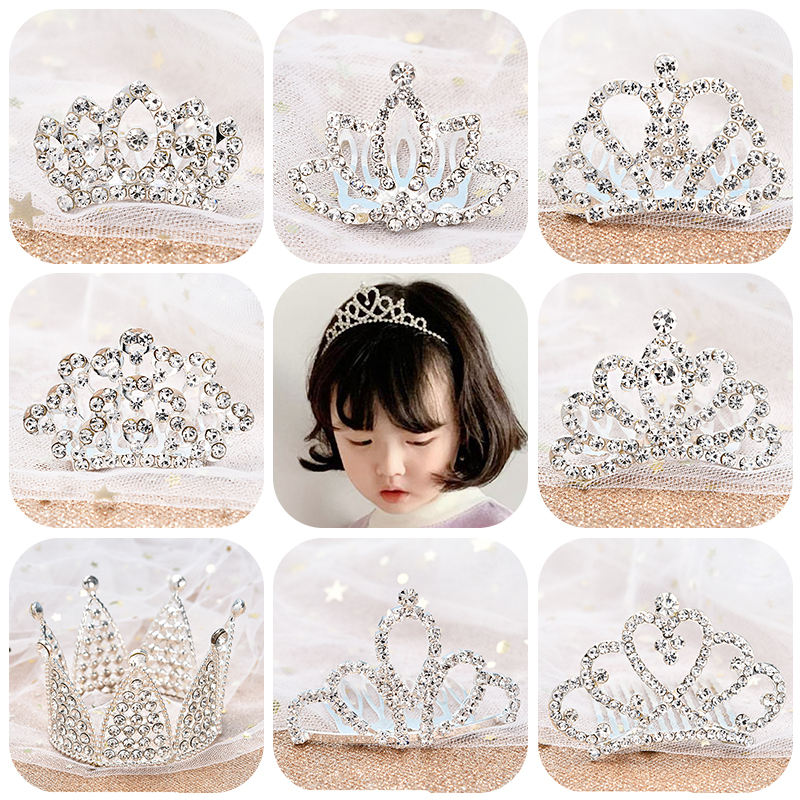 Tiaras brillantes para niñas y niños, diademas con diamantes de imitación, diadema de princesa de plata elegante