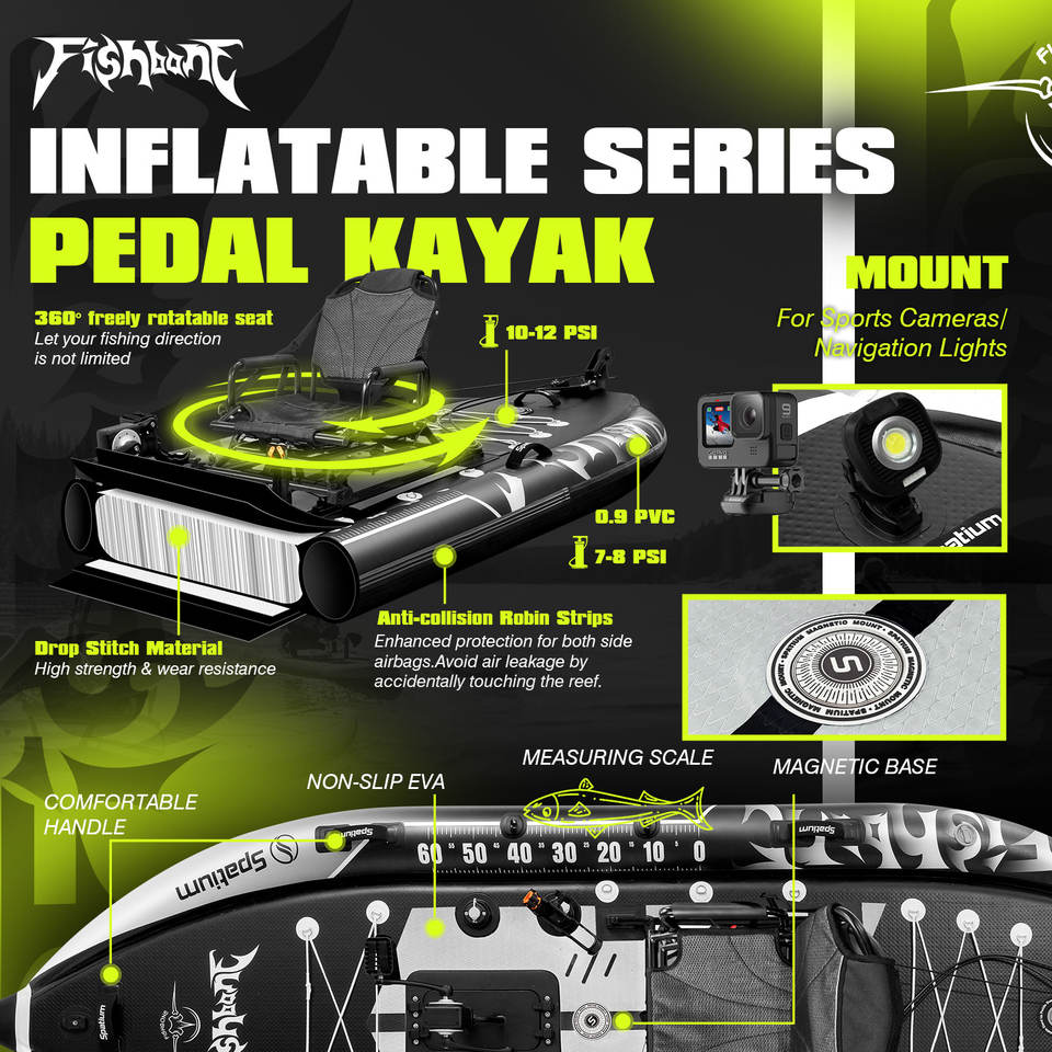 Kayak Inflable Spatium para una Persona, con Pedales, para Pesca, Acepta Pedidos OEM y ODM, Sistema de Pedaleo Suave, Pesca en Grupo con Amigos
