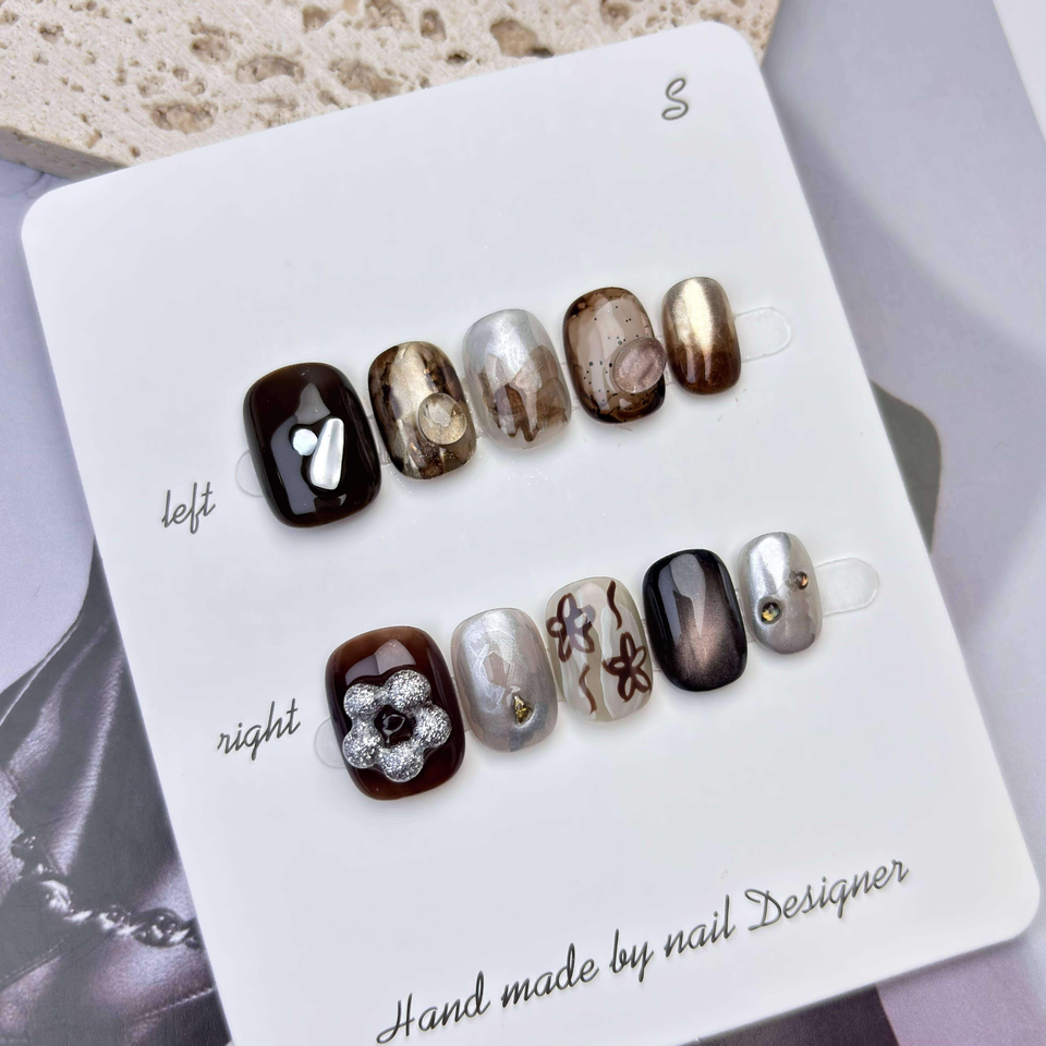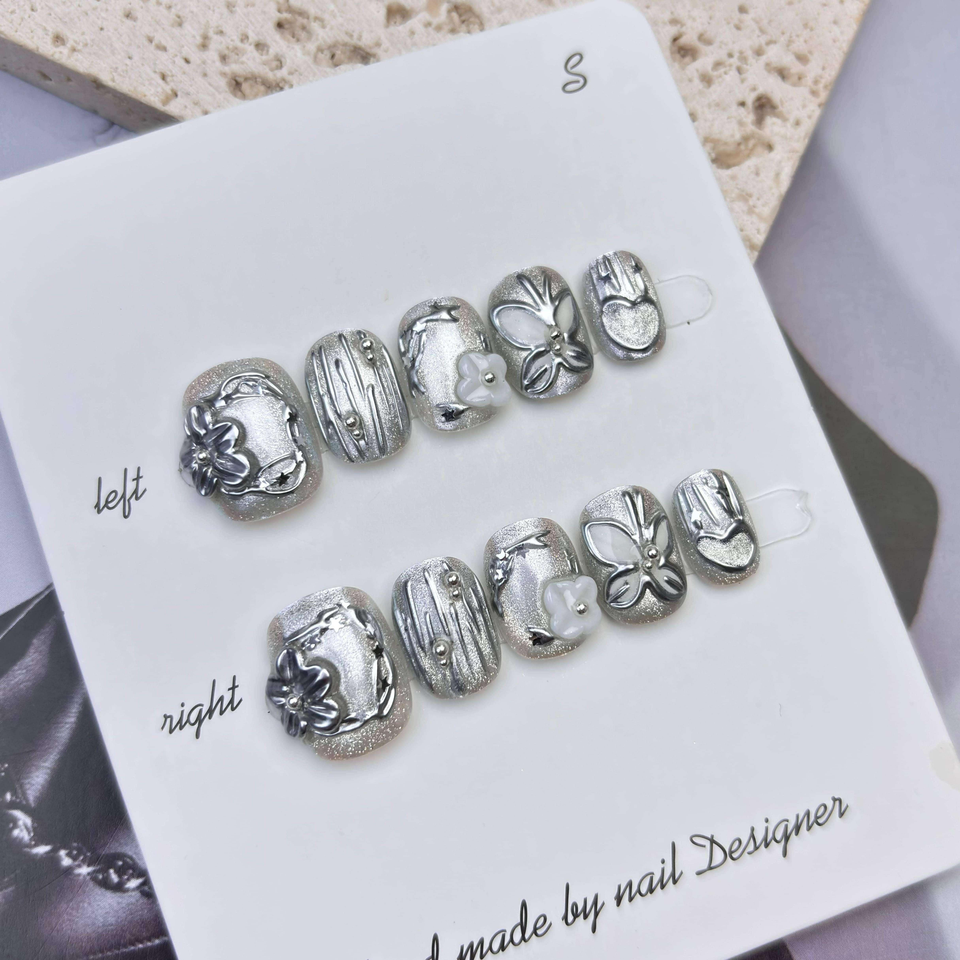 Uñas Postizas Decoradas con Diamantes de Imitación, Hechas a Mano, con Pedrería Brillante, Precio Especial con Descuento