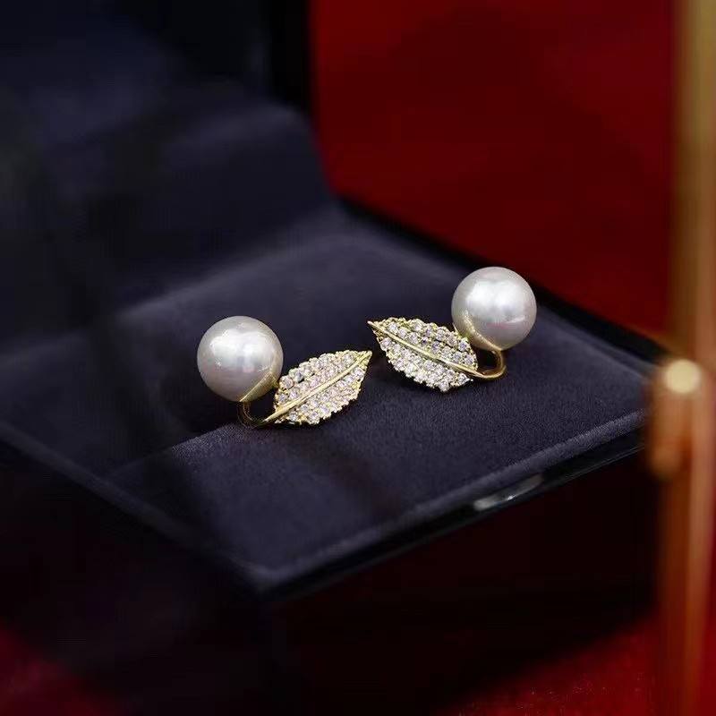 Oferta Especial, Pendientes de Perlas de Agua Dulce de 8-9 mm, Cristal, Diseño de Hoja Elegante y Exquisito, Aguja de Plata y Oro de 14k, Color Preservado
