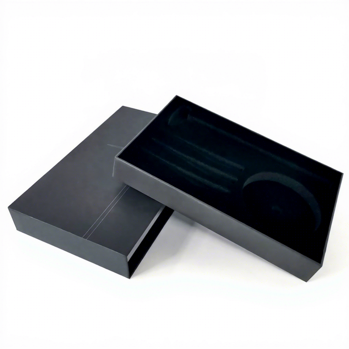 Caja de Regalo de Papel con Textura Especial y Estampado en Oro Rosa, Caja Negra Mate con Acabado Brillante UV para Joyería y Prendas de Moda de Alta Gama